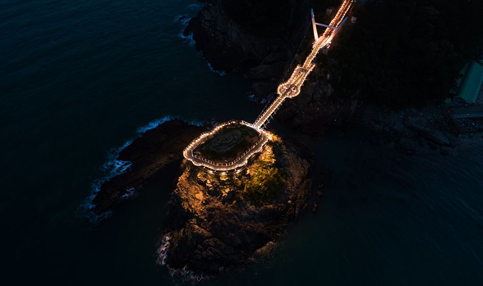 암남공원에서 동섬까지 이어진 다리로 바닥이 철망으로 되어 있어서 스릴을 느낄 수 있어요. 겁이 많다면 무서움도 같이 느낄 수 있습니다. 바람이 많이 불면 구름다리가 출렁거리기도 합니다.